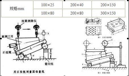 正弦規是配合使用量塊按正弦原理組成標準角,用以在水平方向按微差比較方式測量工件角度和內、外錐體的一種jingmi量儀。度有0級,1級。