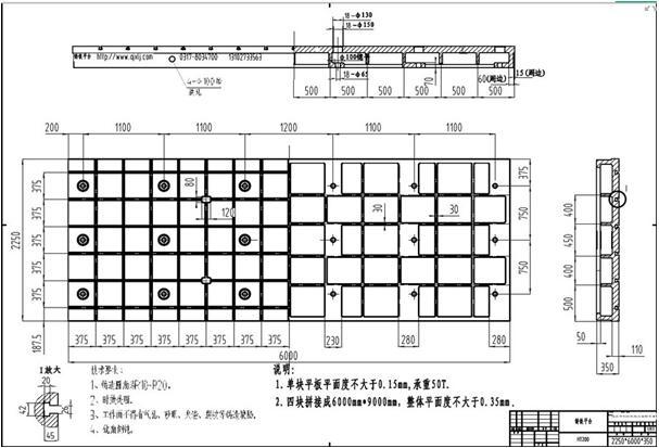 五、焊接平板/鑄鐵工作臺機加工方案:1、焊接平板毛坯回火后完畢運送機加工處理,使用龍門刨床按照圖紙進行粗加工,預留出平板的變形量及刮研余量。