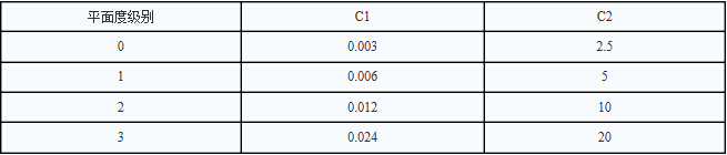 C1、C2為大理石平板平面度級別有關的系數,見下表: